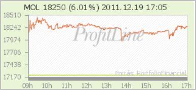A Mol igen erősen kezdte a napot, mert lapértesülések szerint a társaság partnerét, a Gulf Keystone Petroleumot (GKP) az Exxon Mobil a pénteki tőzsdei záróárhoz képest jelentős prémium mellett vásárolná fel. Nem sokkal a budapesti tőzsdezárás előtt a GKP egy neve elhallgatását kérő vezetője cáfolta a hírt. A Mol 1035 forinttal, 6,01 százalékkal 18.250 forintra erősödött, 6,1 milliárd forintos forgalomban.