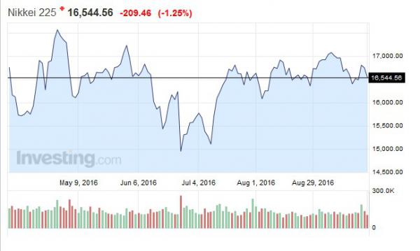 Tokióban a Nikkei225 mutató 1,25 százalékkal, 16 544,56 pontra gyengült. A tokiói tőzsde részvényeinek szélesebb körét felölelő TOPIX index 1,02 százalék mínuszban zárt.