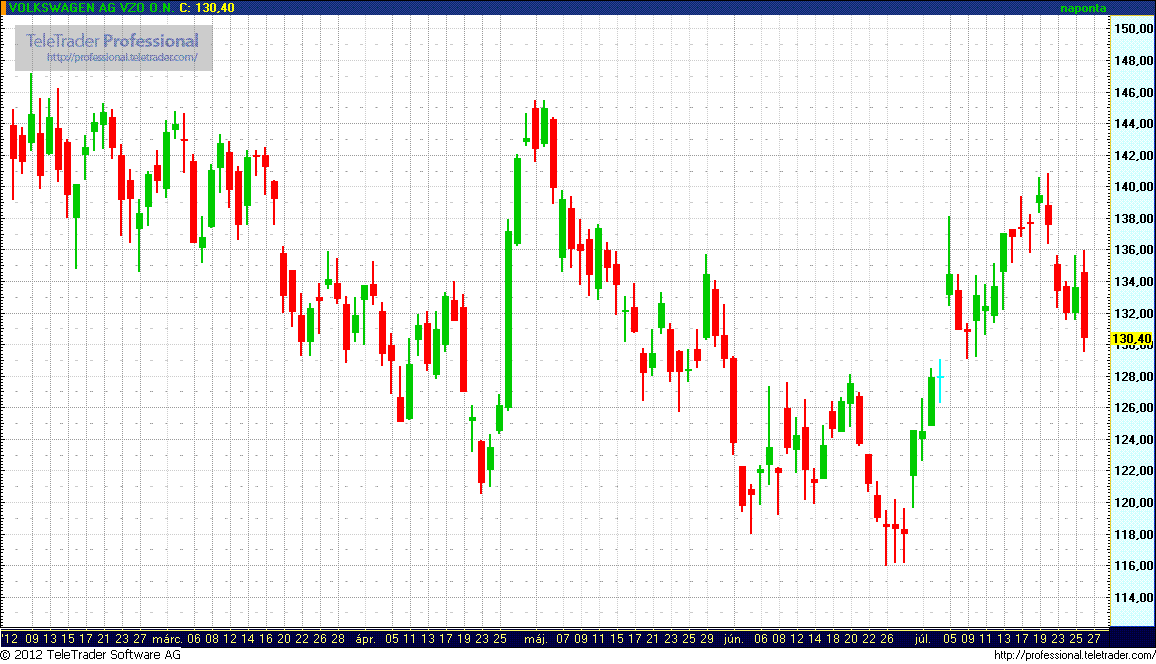 A vállalat árfolyama 2,77 százalékos csökkenés mellett 130 eurónál jár a frankfurti kereskedésben. A Volkswagen részvények az idei évben 13 százalékot emelkedett.