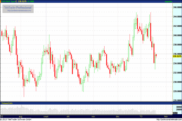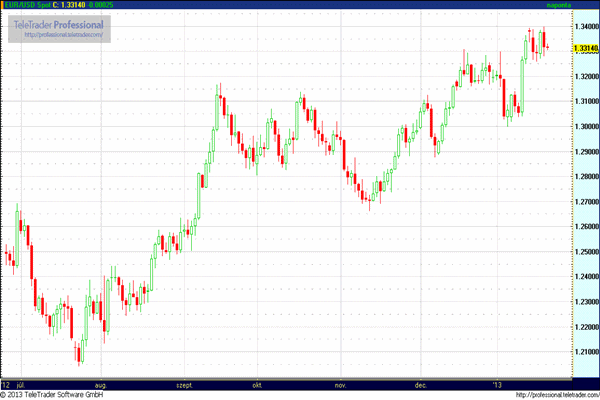 EUR/USD (1,3260 – 1,3380): Az EURUSD ott kezdi a hetet, ahol péntek este abbahagyta a kereskedést. A jelenleg valamivel 1,33 felett jegyzett devizapárban nagy elmozdulásokat okozó hírek nem várhatóak a mai napra. Adatokban ugyan nem lesz a héten sem hiány, de csak egy-két publikáció lesz képes az árfolyamokat érdemben befolyásolni. A mai napon sem az USA-ból, sem az Eurozónából nem számíthatunk izgalmakra. Az Újvilág Martin Luther King születésnapjára emlékezik január harmadik hétfőjén dollárszünnap kíséretében. Az első érdeklődésre számot tartó adat a ZEW index lesz, mely holnap kerül nyilvánosságra. Majd különböző európai konjunktúra indexek váltják egymást a héten, melyek közül a pénteki német IFO index bír csak igazán piacmozgató potenciállal. Az európai pénzügyminiszterek kétnapos megbeszélésre ülnek ma össze Brüsszelben, ahol várhatóan téma lesz a kontinens romló gazdasági teljesítménye, és terítéken lesz az urópia bankoknak nyújtandó ESM finszírozás is. A Commerzbank AG felmérést készített a német vállalatok körében az EURUSD várakozásokat illetően, melynek eredménye szerint a megkérdezettek nagy többsége emelkedő EURUSD árfolyamra számít. A válaszadó vállalatok bíznak a válságból való kilábalásban és az euro jó teljesítményében. Az ilyen felmérések általában kontra indikátorként működnek: tapasztalatok alapján a nagyszámú euro long pozíció azt valószínűsíti, hogy rövidtávon a kurzus nem fog tudni följebb kapaszkodni, hiszen a szereplők nagy része már ellőtte a puskaporát. Ha ezt elfogadjuk, akkor az 1.34-et áttörő árfolyamra jelenleg nem számíthatunk. Magyar idő szerint kedd hajnalban dönt a japán jegybank a szigetország alapkamatáról. A jelenlegi 0,1%-os kamatszintet vélhetőleg nem fogják változtatni, de a mennyiségi lazítással kapcsolatos újabb kötvényvásárlások bejelentésére, valamint a jelenlegi defláció leküzdése érdekében az inflációs cél megemelésére számítunk.