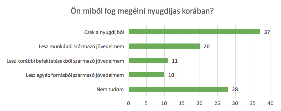 A kutatás szerint az elmúlt négy évben 14 százalékkal csökkent azon bankkapcsolattal rendelkező válaszadók aránya, akik kizárólag az állami nyugdíjra támaszkodnának időskorukban. Ugyanebben az időszakban a bizonytalanok aránya 63 százalékkal emelkedett. Így ma a válaszadók 37 százaléka kizárólag az állami nyugdíjból, 20 százalék munkából, 11 százalék korábbi befektetéseiből élne meg időskorában. A válaszadók 28 százaléka pedig bizonytalan.