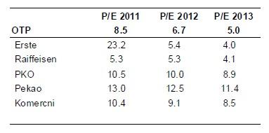 - A nemzetközi piacokhoz hasonlóan az OTP is alulárazottnak tekinthető, bár az elemzők fokozatosan csökkentik a profit előrejelzéseiket. A 2011-es év egy részvényre jutó eredmény (EPS) konszenzus már 400 Ft-ra csökkent a nyáron még 600 Ft-os értékről (-200 Ft). A végtörlesztés nagyjából 300 Ft