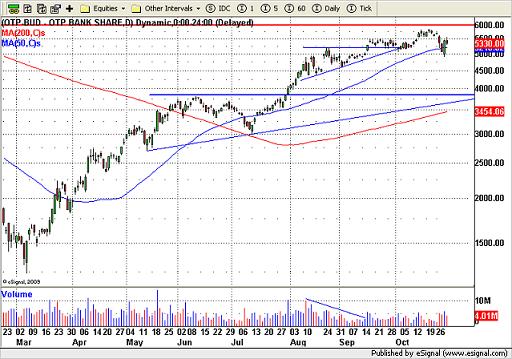 Az OTP kulcsfontosságú az egész magyar piac szempontjából éppen ezért van jelentősége a pénteki napnak és összességében a március óta tartó igen komoly emelkedésének. Meglehetősen erős ellenállást közelített meg a 6000-es szint képében, amihez nem volt elég egy néhány napos, szűk sávban lefolytatott oldalazás. A korrekcióban egészen 5000-ig esett, ahonnan azonban erős forgalommal (erősebbel, mint a megelőző eső napokban) pattant fel és ezt a pénteki eső nap sem veszélyeztette. Ebben a mozgásba egyelőre nincs benne a negatív amerikai zárás, de önmagában is relatív erőről tanúskodik.