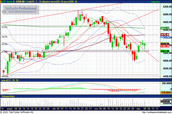A Moodys leminősítés hatására sem tudott kimozdulni az 5070-5270 forintos sávból, ugyan meghintáztatták, de a nap végén az utolsó pillanatban visszahúzták.