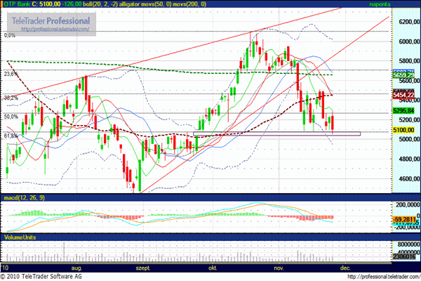 5000 forint eleste után 4450-4500 forintig eshet tovább. Ellenállás továbbra is 5250 forintnál.