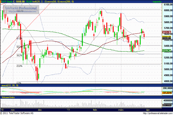 A tegnapi napon is folytatódott a múlt heti emelkedés konszolidációja, ugyan az 50 napos mozgóátlag nem tartotta meg, azonban a 20 naposról visszahúzták 5550 forint fölé.