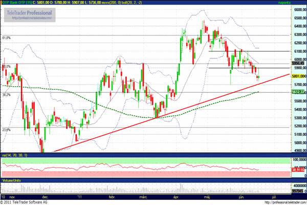 A pénteki korrekciót kihasználva visszatesztelte az 5900 forintos szintet az árfolyam, a nap végére azonban visszaesett 5800 forintra.