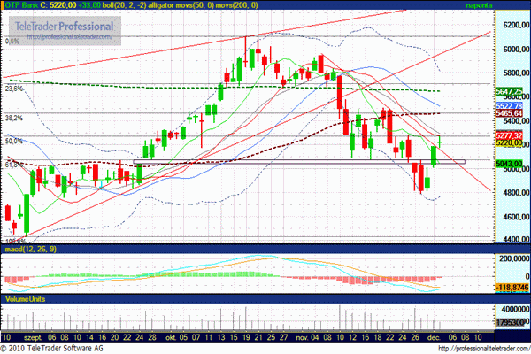 Csökkenésben 5070 forintnak tartania kell, különben visszazuhanhat. Ugyanakkor előfordulhat az is, hogy szeptemberihez hasonló oldalazásba kezd 5070-5270 forint közötti sávban.