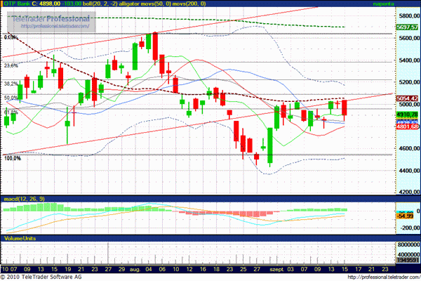 Az OTP piacán csak ez a húzd meg ereszd meg kereskedés folyik, amíg nem fog tudni visszatérni az emelkedő sávba, az 50 napos mozgóátlag fölé, illetve amíg nem esik 4750 forint alá, addig nem is várható változás.