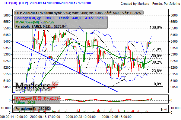 Szakértői vélemények szerint technikai szemmel az OTP kereskedésében az 5.500 forint erős ellenállást jelent, amelyet ha áttör a papír árfolyama, gyorsan 6.000 forintig, vagy akár a fölé is emelkedhet.