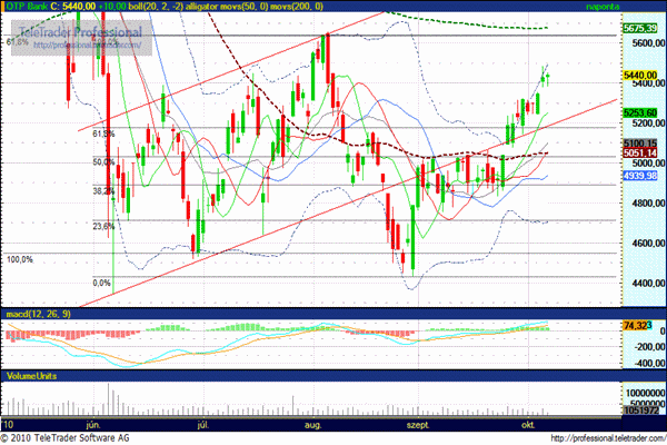 Továbbra is tartani tudja a szerdai kitörést, csökkenés során az 5380 forintos szint megtartja, így nincs okunk kételkedni benne, hogy eléri az 5650 forintos szintet.