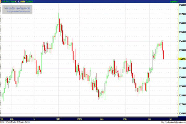 Természetesen nyitva hagyta az utat, hogy ha a gazdasági folyamatok mégsem úgy alakulnának, akkor a vásárlások összegét emelik. A fejlődő piacok eséssel reagáltak a hírre, mivel elérhető közelségbe került a pénzbőség időszakának vége. Ez a kockázatvállalási hajlandóságot csökkenti, viszont a pénznyomda lassulása dollárt erősítő tényező, ami az 1,34 fölötti szintekről 1,3250-ig rallizó árfolyamban csapódott le, és az 1,30-as szint elérése sem tűnik elérhetetlenek belátható időn belül.