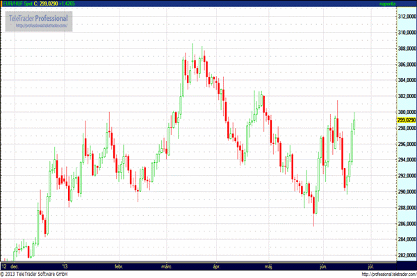 EUR/USD (1,3150 – 1,3290): Iránymutatást akart a piac? Hát tegnap megkapta, de mégsem felhőtlen az öröm. A május 22-i, bizonytalanságot fokozó, és a dollárt gyengítő beszéde után tegnap a Fed elnöke már egy követhető időrendet vázolt az QE programot illetően a két napos nyíltpiaci bizottsági ülés után. Ha az adatok (főleg a munkaerő piaci, és az inflációs) további javulást mutatnak, akkor már idén csökkenthetik a kötvényvásárlások keretét, és teljes kivezetésre a jövő év közepén kerülhet sor.
