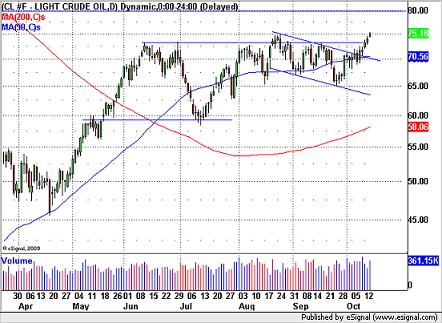 Június óta küzd a 74 dollár környéki szintekkel amit talán most sikerül meghaladnia és 80 dollár közelébe jutnia. Amennyiben sikeresnek bizonyul a kitörés, úgy egy igen erős bázist hagy maga után, amit az elmúlt négy hónapban épített. Erre a bázisra akár egy emelkedő háromszög is rajzolható, mely alapján a 95-100 dollár közeli szintek elérése is elképzelhető egy-két hónapon belül. (Solar Capital)