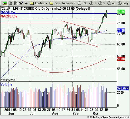 Mostanában hozzászokhattuk az erőltetett rallykhoz, így az olaj esetében sem látni, hol lesz a vége. A 82 dolláros szinten ellenállást talált az árfolyam, amely némileg visszavetette az emelkedést. Várható egy korrekció, amely az emelkedés ütemét tekintve akár 75 dollárig küldheti vissza az olaj árfolyamát. (Solar Capital)