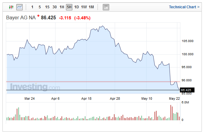 Ismét eladói nyomás alá kerülhetnek a Bayer részvényei miután hivatalosan is bejelentették, hogy 62 milliárd dolláros ajánlatot tesznek a Monsanto felvásárlására.