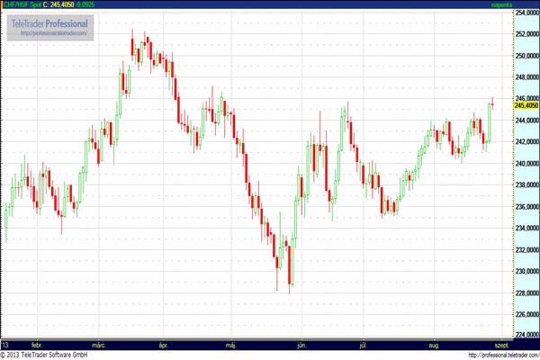 CHF/HUF (243,00 – 247,00): A svájci frank, mint menedékdeviza a szír helyzet körüli bizonytalanság hatására erősödni kezdett, a forint mozgását viszont a gyengülés jellemezte, emiatt ma reggel már a 245-ös szint is mögöttünk volt, amire április óta nem volt példa.