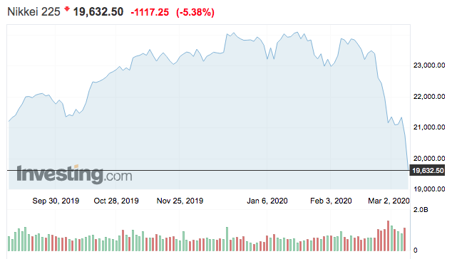 A koronavírus járvány hétvégi hírei, az egyre sokasodó európai megbetegedések, az olaszországi döntések és a vírussal járó média-cirkusz eredményeként ne csodálkozzunk befektetőként, hogy a mai napon komoly vérengzéssel indult az ázsiai tőzsdei kereskedés és nem sok jóban bízhatnak az európai részvénypiacok sem.
