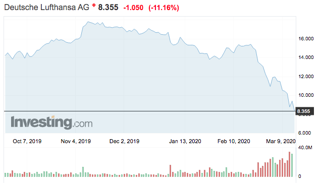 A Lufthansa részvények tőzsdei árfolyama