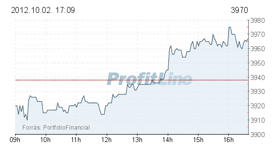 A Mol 175 forinttal, 0,94 százalékkal 18.470 forintra csökkent, 790,7 millió forintos forgalomban. Az OTP-részvények ára 32 forinttal, 0,81 százalékkal 3.970 forintra erősödött, forgalmuk 3,8 milliárd forintot tett ki.