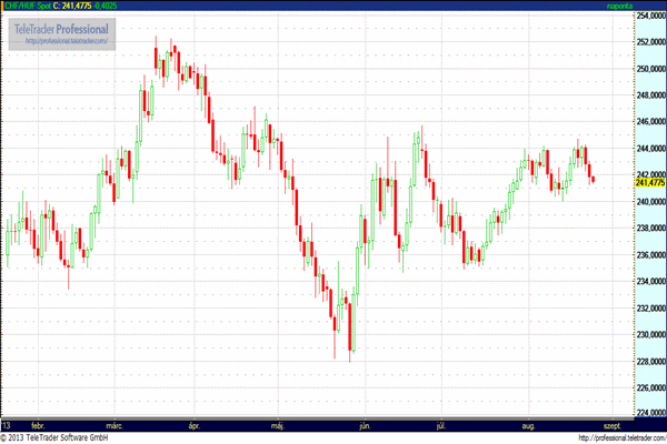 Az valószínű, hogy nem emiatt halasztaná el a Fed a keretösszeg csökkentésének időpontját, mivel egy újabb ingatlanpiaci lufi kialakulása a mesterségesen alacsonyan tartott kamatokkal senkinek sem érdeke, ha egyébként a gazdaság egészéből kedvező adatok érkeznek. A jackson-hole-i találkozó nagyobb piaci visszhang nélkül maradt, akárcsak az újabb igaz, „csak” 10 milliárd eurós görög csomag híre. Az árfolyam továbbra is a jó meleg 1,33-1,3420-as sávban tartózkodik, nagyobb mozgás a hét második felében várható.