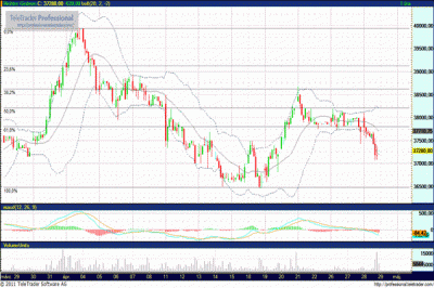A tegnapi nappal tört a 37.800 forintnál lévő támasz, a korábbi napokhoz képest emelkedett forgalommal indult le, a 37.150 forintnál lévő támaszát el is érte. Azzal, hogy elesett a 37.800 forintos szint, megtört az április közepén kibontakozó lendület.