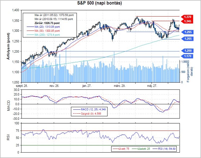 Különben a minta nagyon hasonló volt korábban, csak éppen a 200 napos mozgóátlaggal. Vagyis egyre inkább torlódik az árfolyam a felső ellenálláshoz. Először az 1.345-ös szintben akadhat meg az árfolyam, Utána pedig a lokális csúcs jelentene akadályt 1.370 pontnál. Ha ezt is legyőzné az árfolyam, akkor a következő megállót 1.400 pont fölött találnánk.