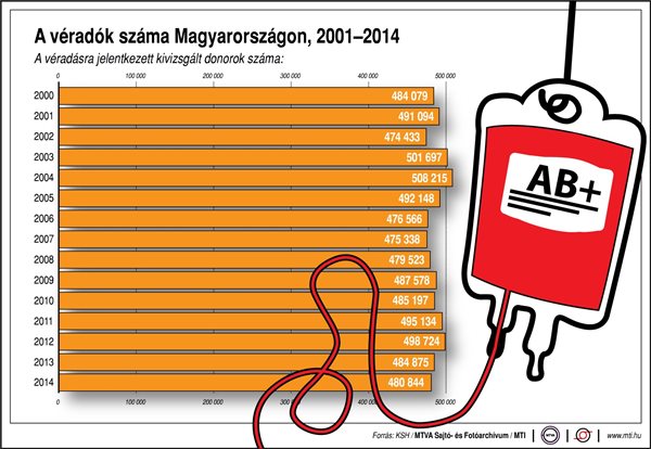Az elmúlt évben 405 ezer egységnyi vért adtak a véradók, ami éppen csak fedezi a kórházak igényeit, vagyis növelni kell a véradók számát - jelentette ki az Országos Vérellátó Szolgálat vezetője az M1 aktuális csatorna keddi műsorában.