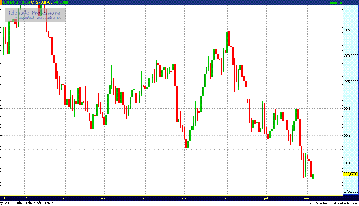 Stabilan 280 alatt az euró jegyzése