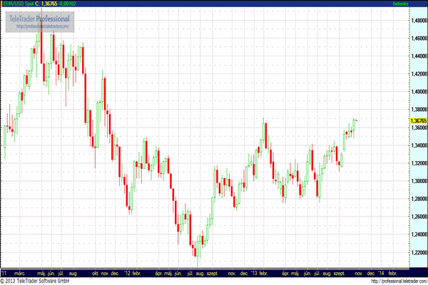 EUR/USD (1,3610 – 1,3750): A kormányzati leállást követően az USA-ban még a mai napig nem állt helyre teljesen a rend. Az adatpublikációk továbbra is váratnak magukra, habár holnap a munkaerőpiaci számokból kaphatunk egy adagot. A költségvetési vitát követően gyakorlatilag folyamatosan emelkedik az EURUSD kurzusa, mely a mennyiségi lazítás idén már nem várható csökkentésére adott reakció.