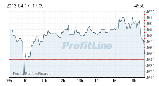 A Mol 40 forinttal, 0,25 százalékkal 16 040 forintra erősödött, 627,8 millió forintos forgalomban. Az OTP-részvények ára 10 forinttal, 0,22 százalékkal 4550 forintra nőtt, forgalmuk 7,2 milliárd forintot tett ki. A Magyar Telekom árfolyama 4 forinttal, 0,96 százalékkal 419 forintra emelkedett, forgalma 456,9 millió forint volt. A Richter-papírok árfolyama 200 forinttal, 0,59 százalékkal 33 950 forintra csökkent, a részvények forgalma 354,5 millió forintot ért el. A másik gyógyszeripari részvény, az Egis árfolyama 431 millió forintos forgalom mellett 400 forinttal, 2,15 százalékkal 18 200 forintra esett.