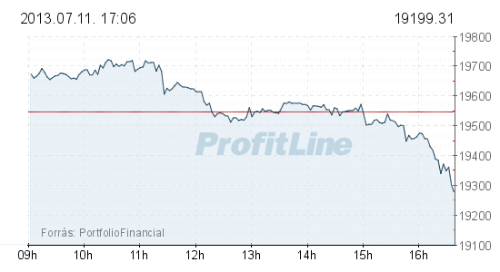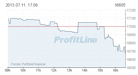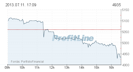A Mol 395 forinttal, 2,32 százalékkal 16 605 forintra csökkent, 1,1 milliárd forintos forgalomban. Az OTP-részvények ára 125 forinttal, 2,47 százalékkal 4935 forintra esett, forgalmuk 11,4 milliárd forintot tett ki. A Magyar Telekom árfolyama 5 forinttal, 1,53 százalékkal 322 forintra gyengült, forgalma 354,7 millió forint volt. A Richter-papírok árfolyama 10 forinttal, 0,28 százalékkal 3570 forintra csökkentette értékét, a részvények forgalma 1,7 milliárd forintot ért el. A másik gyógyszeripari részvény, az Egis 101,3 millió forintos forgalom mellett 380 forinttal, 1,71 százalékkal 21 900 forintra csökkent.