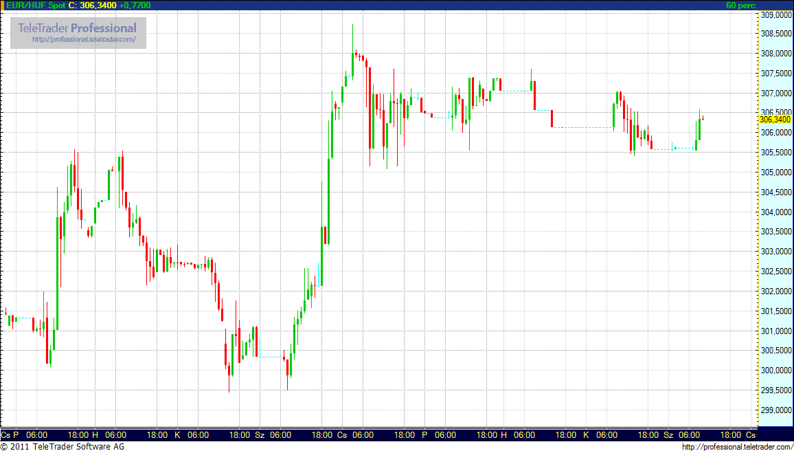 Az eurót szerdán délelőtt tíz órakor 306,42 forinton jegyezték a bankközi deviza kereskedelemben a kedd esti 306,35 forint után.