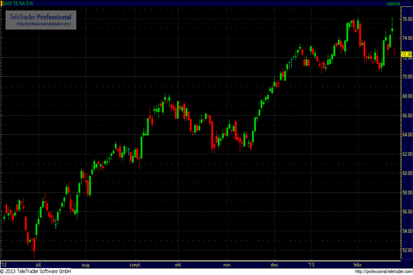 A BASF 2012-ben 78,7 milliárd euró értékesítési árbevételt ért el, 7 százalékkal magasabbat a 2011-esnél, az adó- és kamatfizetés előtti eredménye (EBIT) 5 százalékkal 8,9 milliárd euróra emelkedett. A vállalat árfolyama a délelőtti kereskedés során a kedvező eredmény ellenére 3,5 százalékos esést mutat, ami azonban leginkább az olasz válaszási eredmény következtében kialakult rendkívül kedvezőtlen befektetői hangulat eredménye.