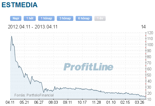 Az EST Média részvény tőzsdei árfolyama az elmúlt 1 évben