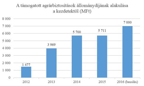 Évről évre dinamikusan növekszik a támogatott mezőgazdasági biztosítások állománya: míg az induló évben, 2012-ben még másfél milliárd forint alatt maradt a teljes állománydíj, idénre ez az érték várhatóan eléri a 7 milliárd forintot.