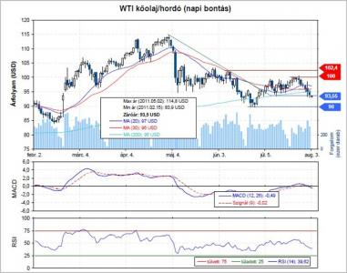 A romló gazdasági hangulat az olajat sem kíméli. Az elmúlt napok eseményeinek köszönhetően az olaj árfolyama is tovább csökkenhet, amelyet elsősorban az újabb recessziótól való félelem küldhet lejjebb. Ugyanakkor a kezdődő hurrikán-szezon okozhat sokkokat az olaj piacán, ha a Mexikói-öbölben olajplatformot talál el egy vihar.