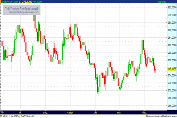 Nap közben 274,80 és 275,80 forint között mozgott az euró árfolyama. A forint egész héten erősödött az euróval szemben, pénteken még 278 forint körül volt az árfolyam. A kereskedők szerint ebben közrejátszott, hogy a jegybank részéről több olyan nyilatkozat is megjelent, amelyeket a piac úgy értelmezett, hogy a kamatemelési ciklus folytatódhat, akár még az év utolsó monetáris tanácsi ülésén is sor kerülhet egy újabb szigorításra.