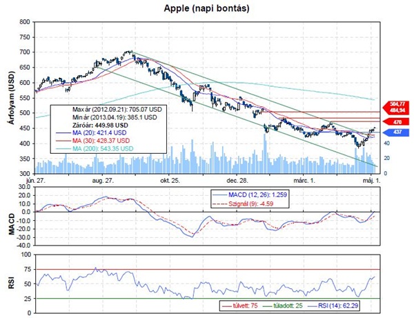 A kedvező árfolyammozgást látva a korábbi 470 dollárról 485 dollárra emeltük a tervezett kiszállási pontot, ami a korábban hagyott rés alsó élét jelenti. Azonban a 470 dolláros árfolyamnál található kisebb ellenállás miatt szűk stop-ok alkalmazását javasoljuk, annak érdekében, hogy védve legyünk egy esetleges negatív irányú korrekció ellen.