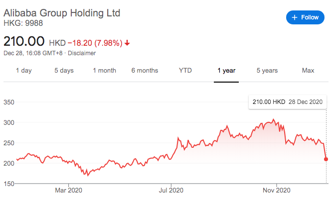 Az Ant IPO novemberi felfüggesztésétől számítva több mint 30%-ot vesztettek az Alibaba részvényesei.