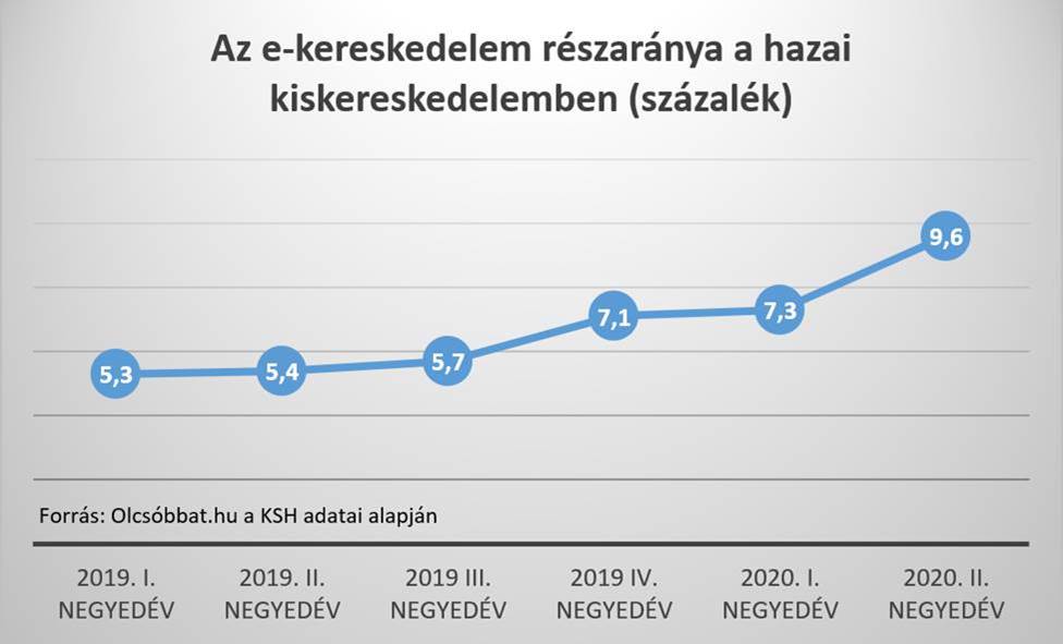 Az e-kereskedelem egyike azon kevés piaci szegmensnek, amelyek számára a koronavírus-járvány jelentős fejlődési lehetőséget hozott. Bár a tavaszi lezárások idején sok vásárló kényszerből kezdett vásárolni az interneten, úgy tűnik, az új felhasználók közül sokan a jövőben is online felületeken szerzik be legalább részben a szükséges árucikkeket. Erre utal az a tény, hogy a korlátozások nélkül telt júliusban és augusztusban is magas szinten stabilizálódott az e-kereskedelmi forgalom: a két hónap során regisztrált 147 milliárd forintos volumen 22 százalékkal volt magasabb, mint tavaly ilyenkor.
