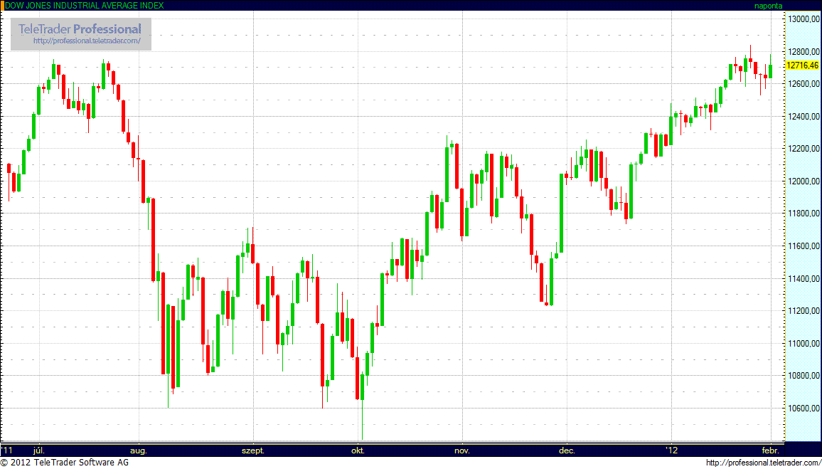 A befektetők derűlátását erősítette több kedvező amerikai makrogazdasági adat, illetve azok a hírek, miszerint már csak kevés választ el attól, hogy megszülessen a megállapodás Görögország és magánhitelezői között, amivel Athén elkerülheti a csődöt. Az amerikai feldolgozóipar állapotát tükröző januári index június óta legmagasabb szintre került. Ugyancsak szerdán közölt adat szerint az építőipari kiadások 1,5 éves csúcsra emelkedtek decemberben.