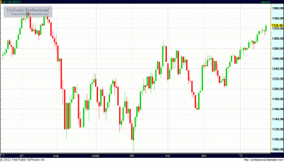 A DJIA index 82,87 ponttal, azaz 0,65 százalékkal 12.758,62 pontra emelkedett. Az S&P 500-as mutató 11,38 ponttal, vagyis 0,87 százalékkal 1.326,03 pontra gyarapodott. A technológiai részvények Nasdaq Composite mutatója 31,67 ponttal, 1,14 százalékkal nőtt, és 2.818,31 ponton zárt.