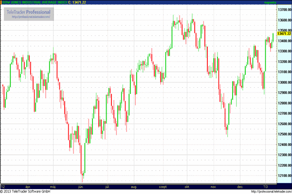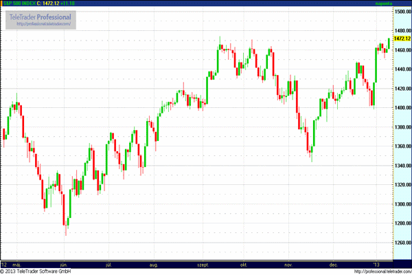 A Dow Jones ipari átlag index 0,60 százalékkal 13.471,22 pontra, az S&P 500 index 0,76 százalékkal 1472,12 pontra emelkedett, amire 2007 decembere óta nem volt példa.