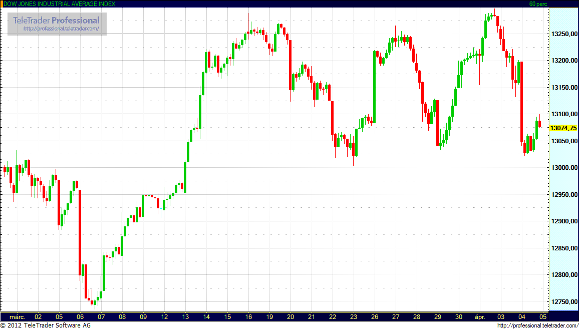 A Fed kedden kiadott jegyzőkönyvéig számos befektető reménykedett abban, hogy az amerikai jegybank újabb gazdaságélénkítő monetáris enyhítéseket vezet be, azonban a bank szerint a gazdaság külön intézkedések nélkül is erősödik. Fokozta a piaci feszültséget, hogy az ADP felmérése alapján a magánszektorban foglalkoztatottak számának bővülése márciusban némiképp elmaradt a várakozásoktól, 217 ezer fő helyett 209 ezer fős bővülés mutatkozott. Csalódást okozott a hozamemelkedéssel járó spanyol kötvényaukció is.