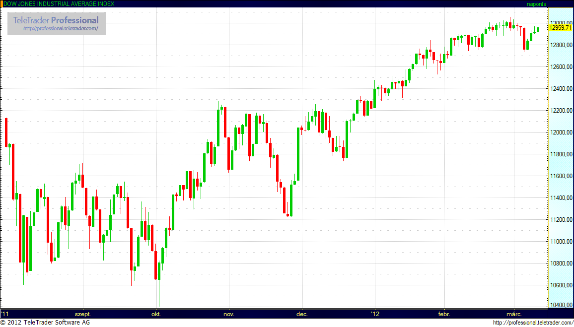 A DJIA index 37,69 pontos, azaz 0,29 százalékos növekedéssel 12.959,56 ponton zárt. Az S&P 500-as mutató 0,22 ponttal, vagyis 0,02 százalékkal 1.371,09 pontra erősödött. A technológiai részvények Nasdaq Composite mutatója 4,68 ponttal, azaz 0,16 százalékkal gyengült és 2.983,66 ponton zárt.