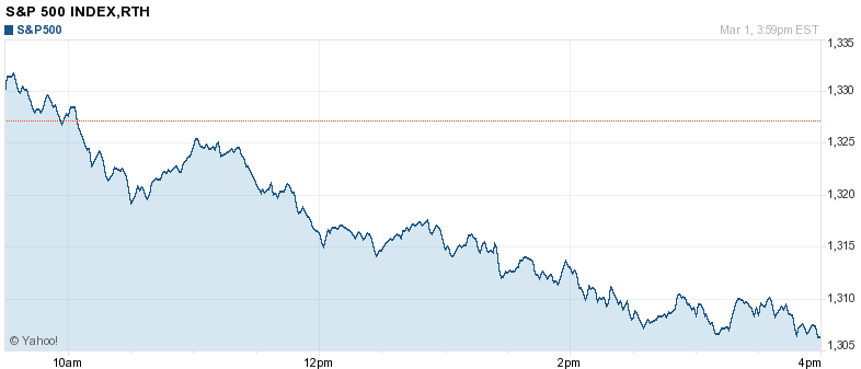 A lejtmenetet részben Ben Bernanke amerikai jegybank-elnöknek az a kijelentése váltotta ki, hogy az emelkedő olajár visszafoghatja a gazdasági növekedést. Rontott a befektetői hangulaton az a napközben ismertetett adat is, amely szerint csökkentek az amerikai építőipari kiadások januárban. Ben Bernanke az amerikai szenátus banki bizottsága előtt tartott meghallgatásán kedden azt mondta, hogy a hosszú időn át növekvő olajárak veszélyt jelenthetnek az amerikai gazdaságra.
