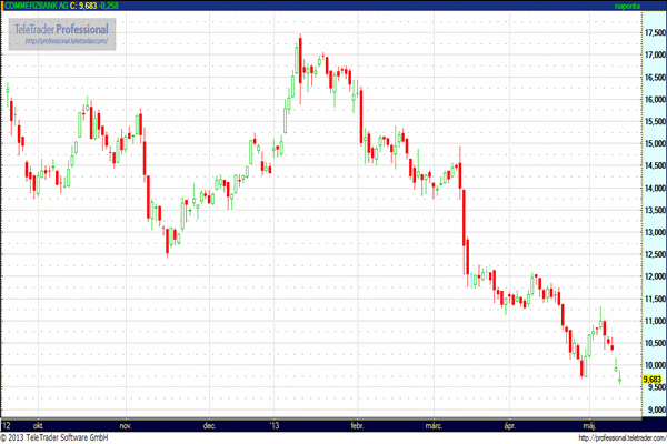 A tegnapi hírek még 5,5 eurós tőkeemelésről és 454,54 millió darab új részvényról szóltak. Az új információk alapján a tőkeemelés következtében a hígulási hatás nagyobb lesz, mint a korábban várt, így ma negatív árfolyam korrekcióra lehet számítani. A tőkeemelés május 15. és május 28. között fog zajlani, azonban egyelőre hivatalos bejelentés nem érkezett arról, hogy melyik nap kell a részvényeket birtokolnia annak, aki szeretne a jegyzésben részt venni. A bankpapír árfolyama a frankfurti kereskedésben 2,65 százalékos mínuszban tartózkodik.