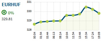 Az eurót este fél hétkor 330,04 forinton jegyezték, míg reggel nyolckor 329,09 forintot ért. Az euró jegyzése 328,62 és 330,77 forint között mozgott hétfőn.