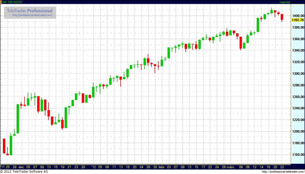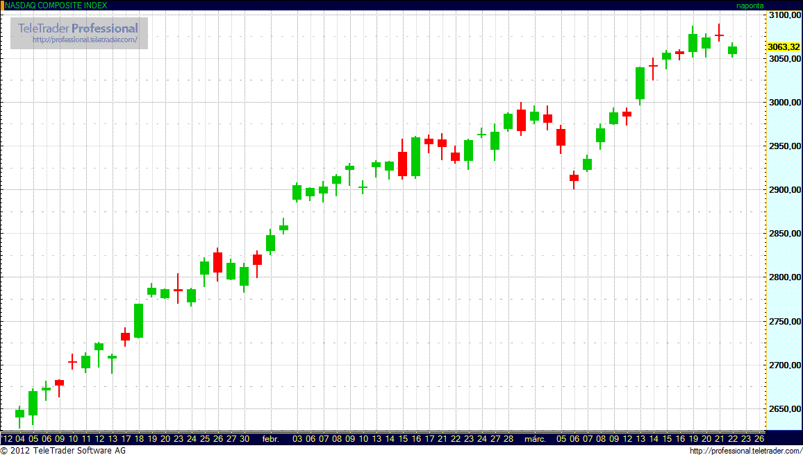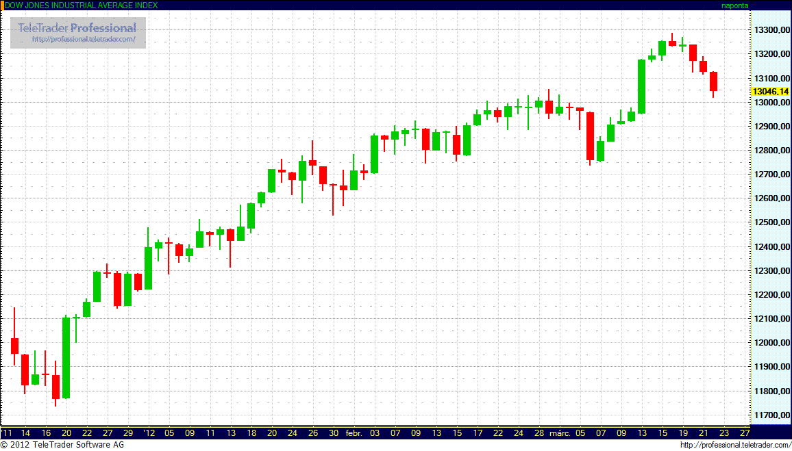 A héten mutatott csökkenés ellenére az indexek idei évi teljesítménye továbbra is kimagaslónk mondható, a Dow index 7 százalékos, az S&P 500 index 11 százalékos, míg a Nasdaq 18 százalékos erősödést ért el eddig 2012-ben.